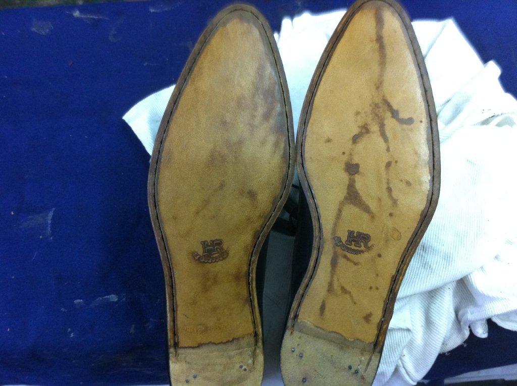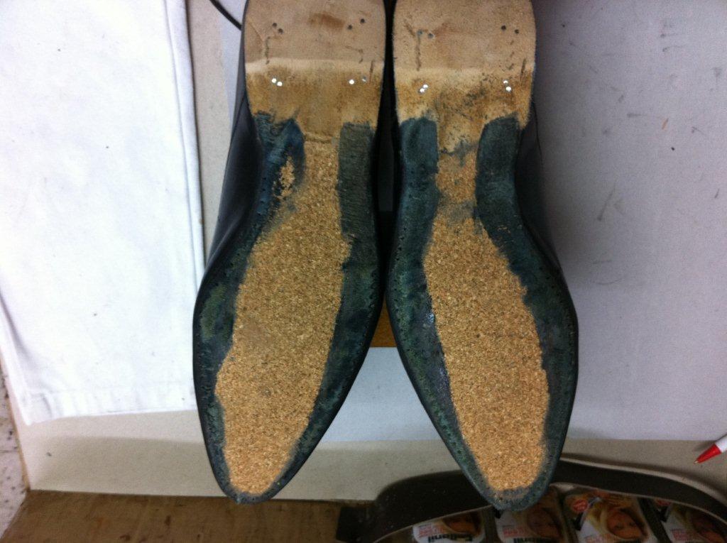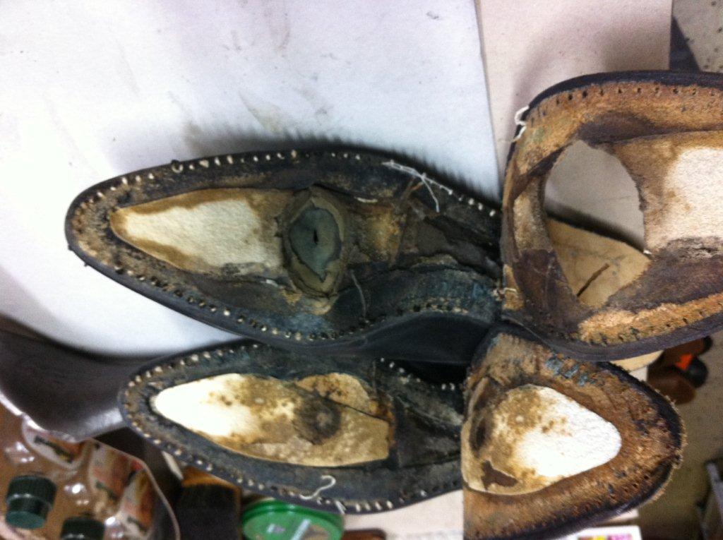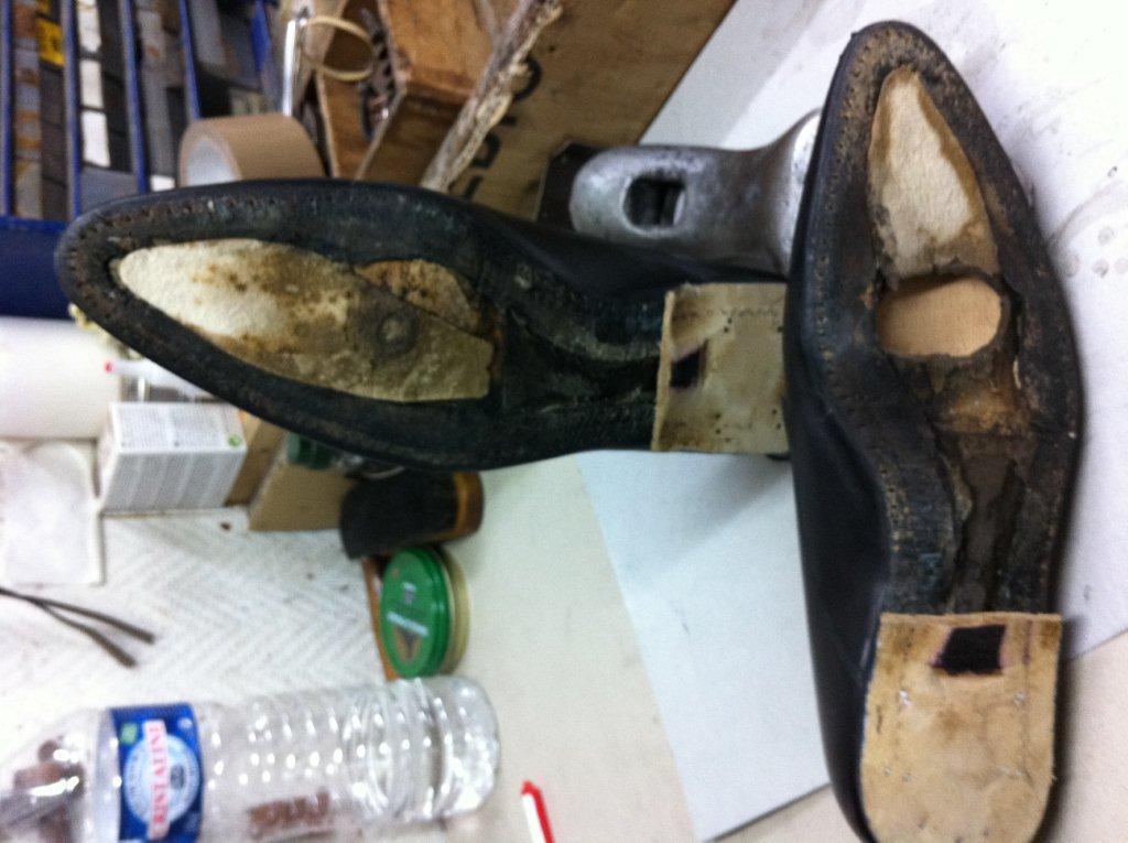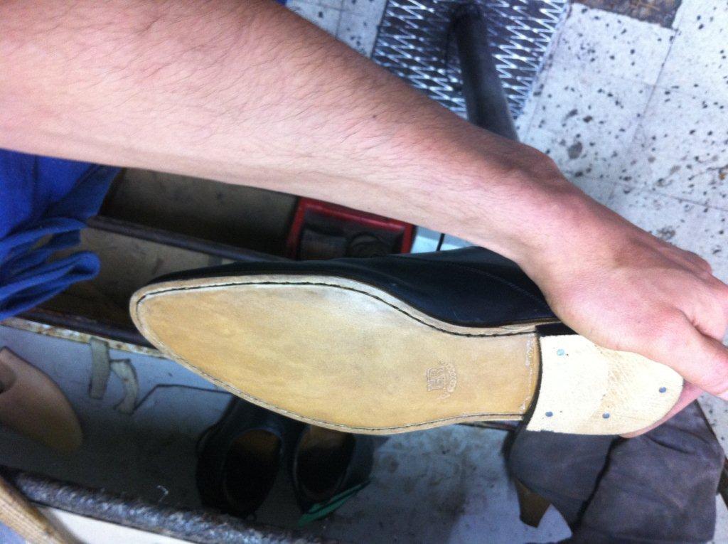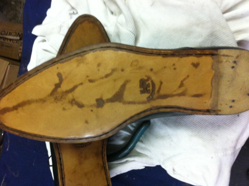 Travaux de ressemelage cuir cousu blake sur une paire de Louis Vuitton,étape par étape, avec d’autres ressemelage avant et après.